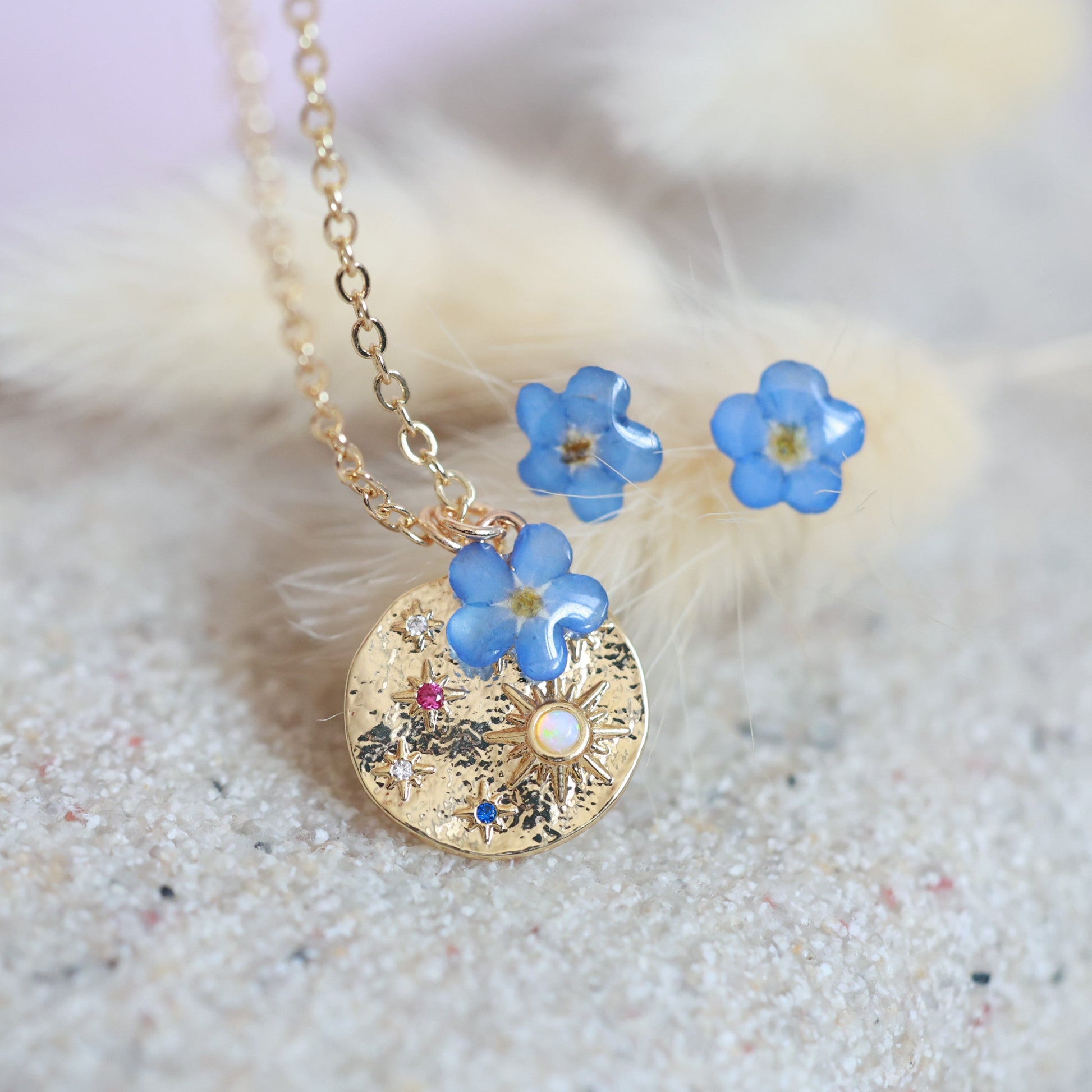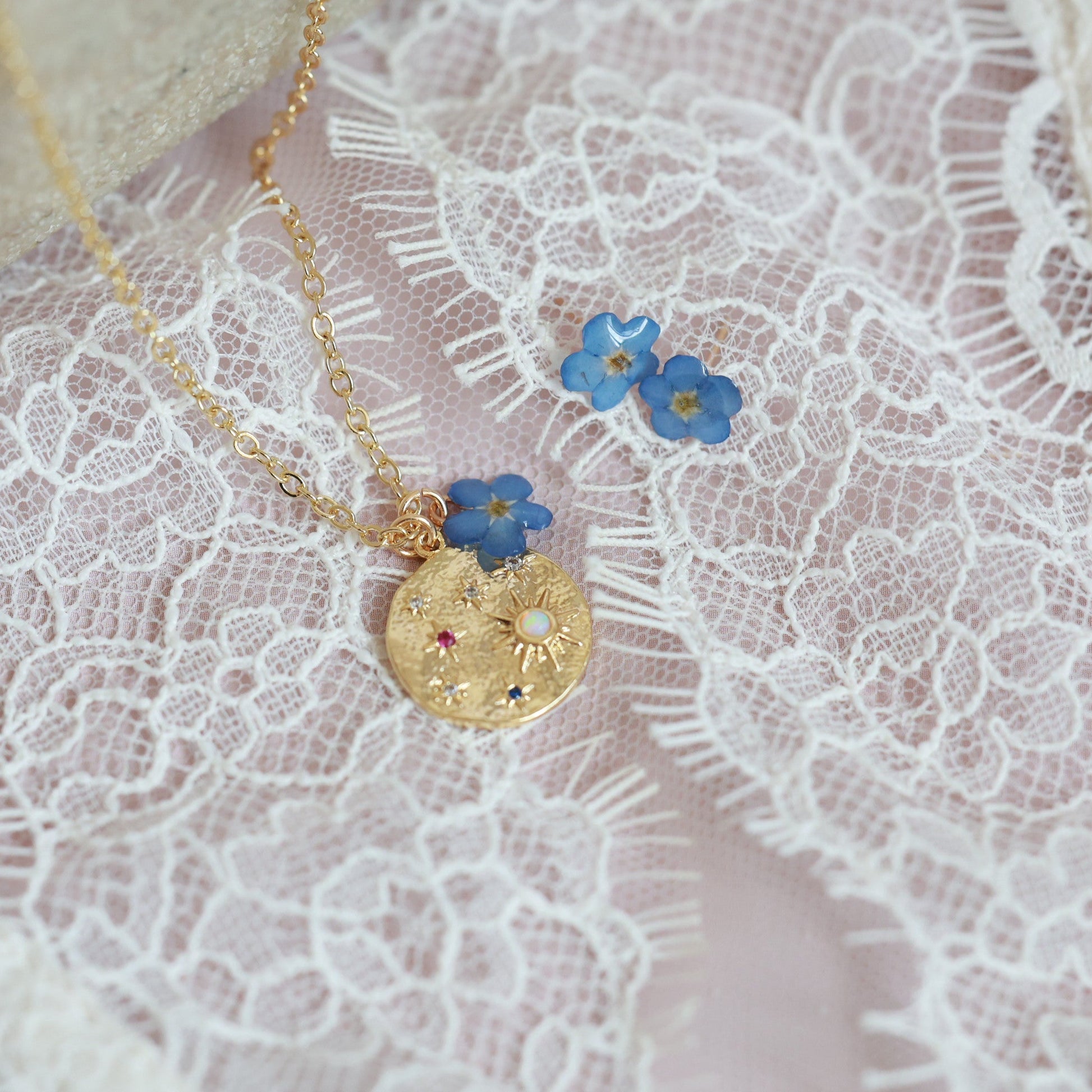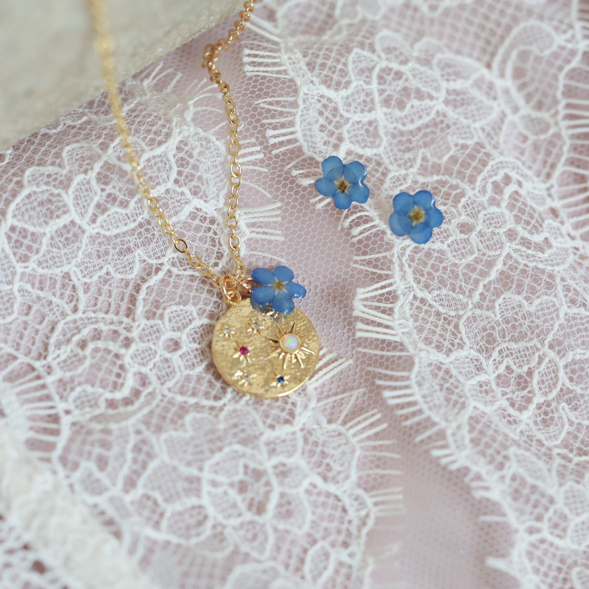Նուրբ, երազկոտ և խորհրդանշական այս ձեռագործ հավաքածուն միավորում է անմոռուկ ծաղիկների հավերժական գեղեցկությունն ու գիշերային երկնքի կախարդանքը։