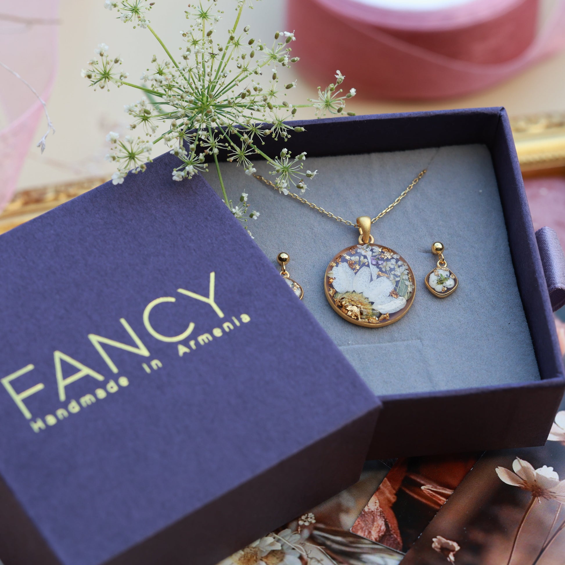 Ձեռագործ զարդերի արծաթյա այս հավաքածուն բաղկացած է վզնոցից և ականջօղերից, որոնցում պահպանված է բնական ծաղիկների, այդ թվում երիցուկի նուրբ գեղեցկությունը ։ Ոսկեջրած արծաթը զարդին փոխանցում է ջերմ և էլեգանտ տեսք։