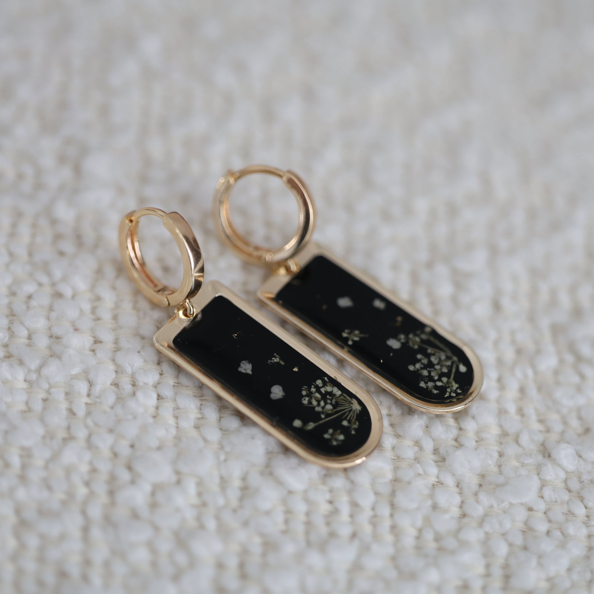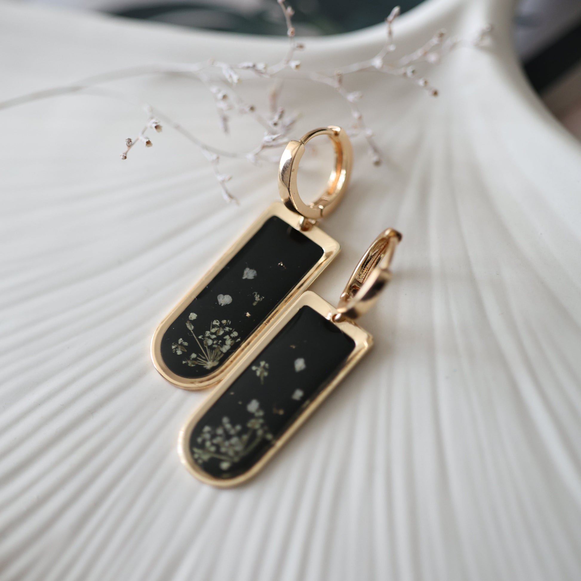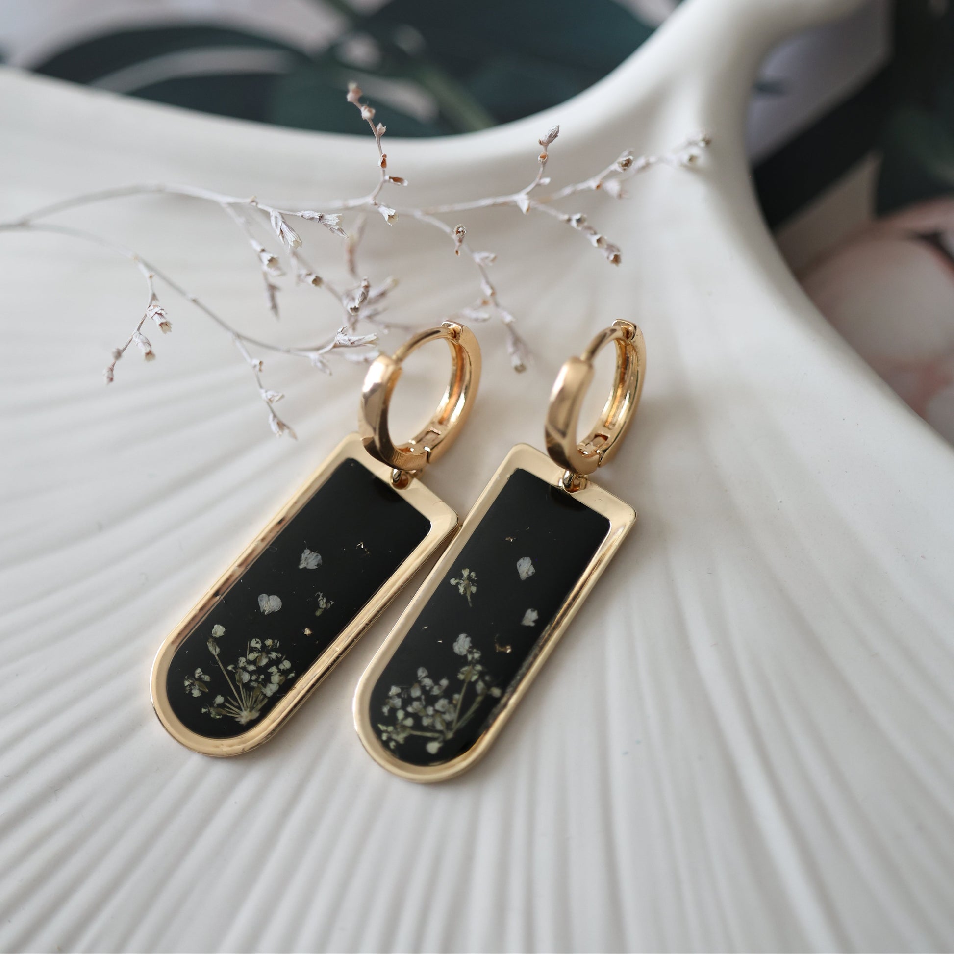 Սև ձեռագործ ականջօղեր պատրաստված բնական ծաղիկներից