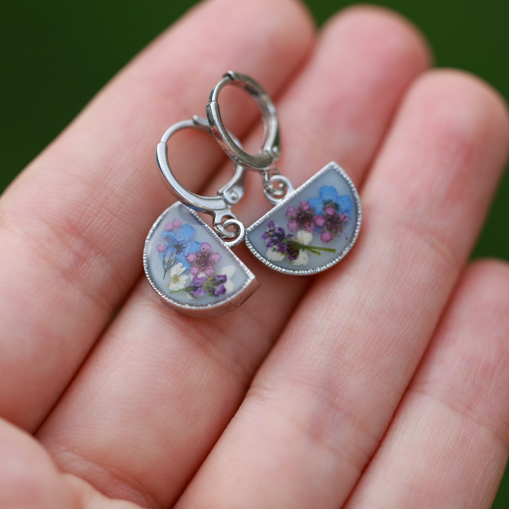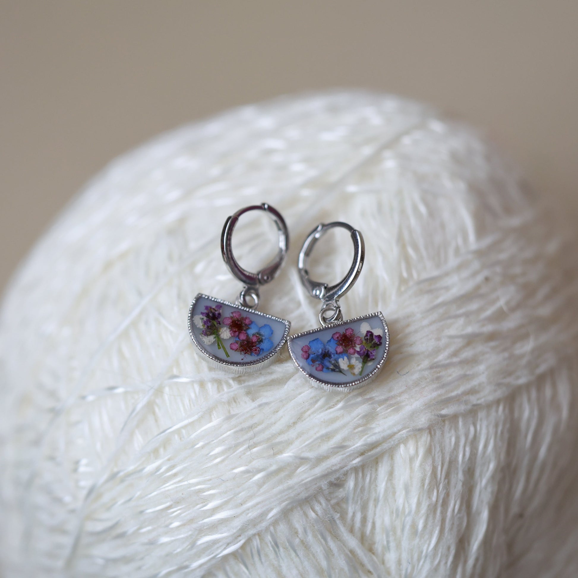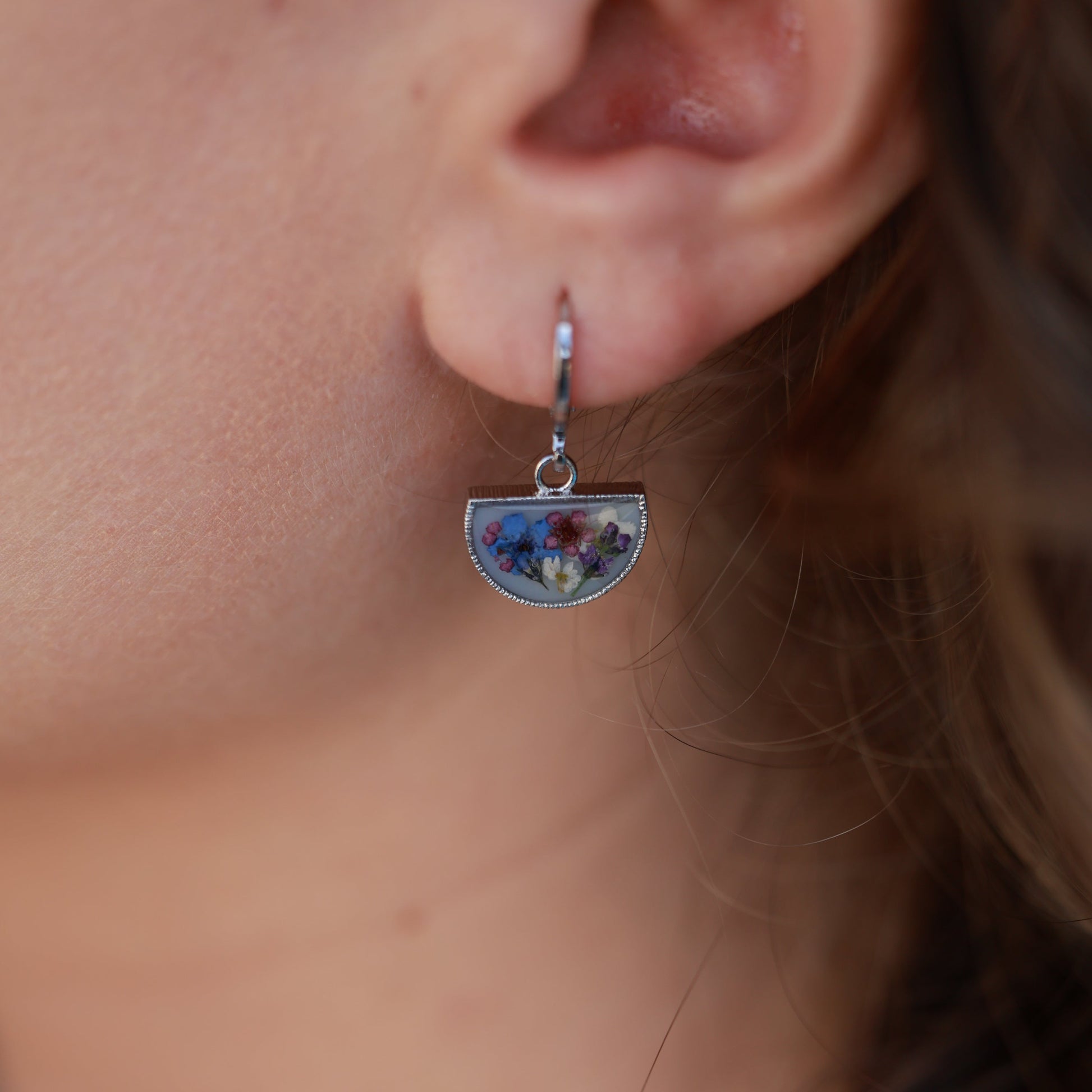 Այս ձեռագործ օղերը աչքի են ընկնում իրենց չկրկնվող և նուրբ դիզայնով։ Պատրաստված են բնական ծաղիկներից, որոնք ապահով ծածկված են բարձրորակ խեժի նուրբ շերտով։