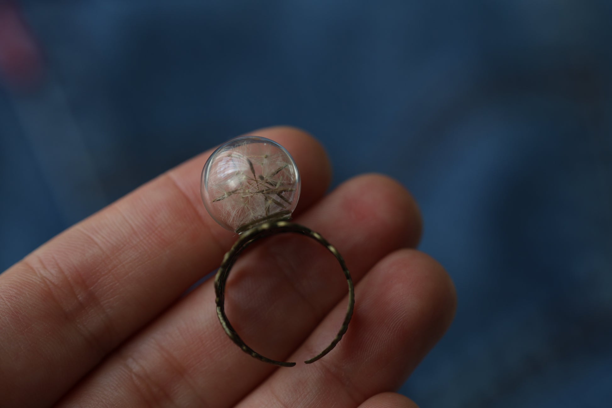 This dreamy, vintage-inspired captures a fleeting moment of nature - real dandelion seed, carefully preserved inside a glass globe.